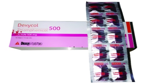 Tiap kapsul Dexycol 500 mg mengandung Thiamphenicol sebanyak 500 mg.
