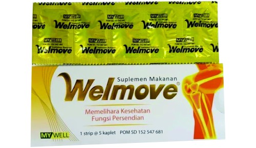 Welmove merupakan suplemen yang berfungsi untuk memelihara kesehatan tulang rawan dan persendian dari gejala peradangan. Suplemen ini dapat membantu mengatasi nyeri, sehingga penderita dapat beraktivitas dan bergerak dengan normal. Welmove memiliki kandungan Glucosamine HCl 500 mg, Chondroitin SO4 400 mg, Vitamin C 50 mg, Mn 0.5 mg, Mg 10 mg, Zn 5 mg. Welmove bekerja dengan cara, zat aktif glucosamine dalam welmove mengantikan glucosamine yang diproduksi oleh tubuh karena zat tersebut semakin berkurang seiring bertambahnya usia. Glukosamin HCl dan kondroitin mampu memperlambat kerusakan tulang dan sendi. Kedua zat aktif tersebut juga bekerja efektif untuk mengurangi nyeri dan memperkuat persendian. Hal tersebut akan mencegah terjadi osteoarthritis (peradangan sendi) yang sering terjadi pada lutut, punggung, dan pinggul.